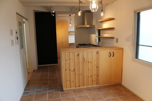 昨日に引き続いて一宮市のナチュラルリフォーム。ナチュラルということで、自然素材を多く採用していまして、天井は土佐和紙やパイン材壁は左官屋さんの手によるしっくい塗り、床には無垢材のカラマツのフローリングやキッチンなどの床には、輸入タイルを使用しました。