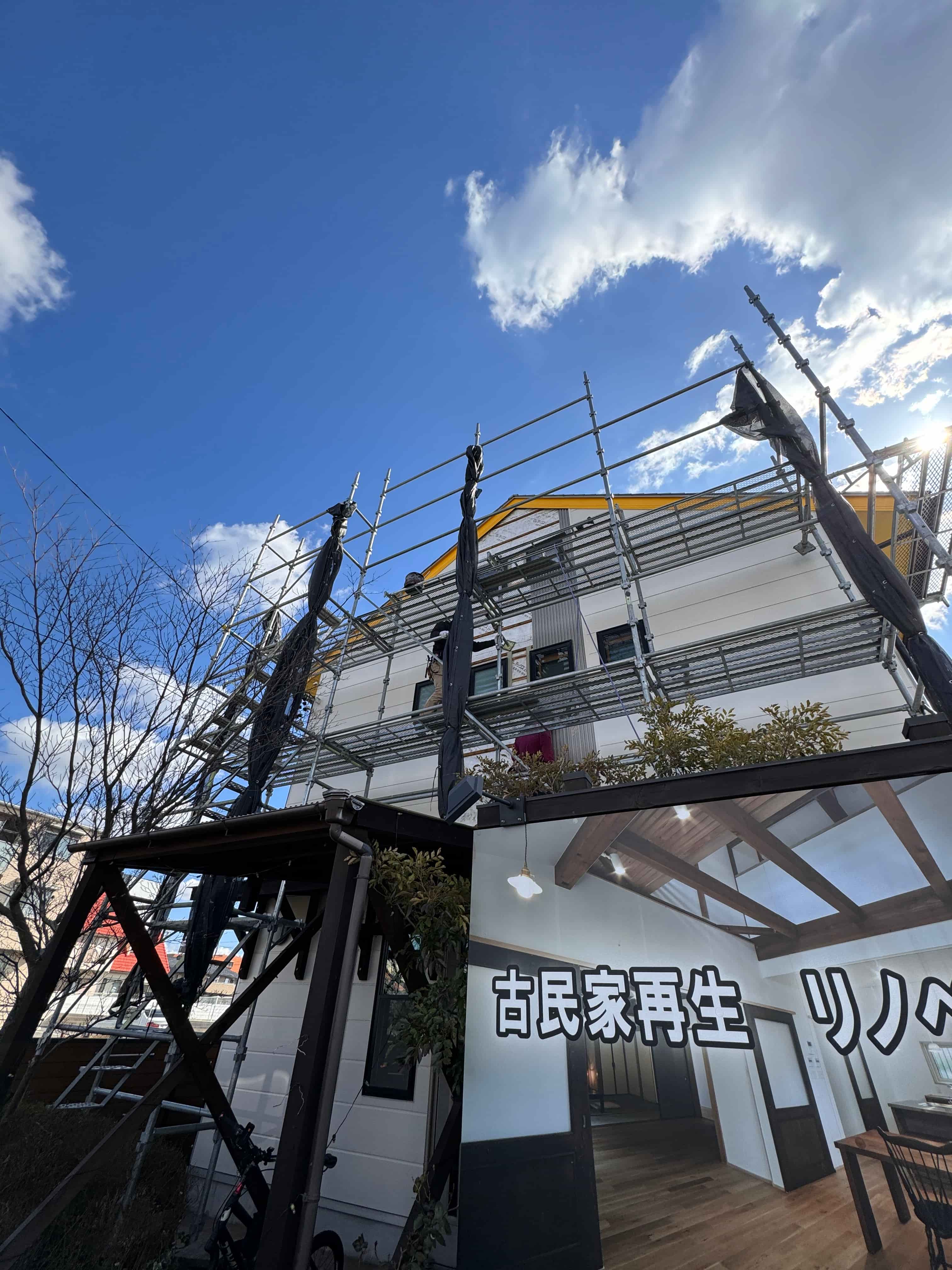 事務所の外壁リフォーム進行中!山口建板さんの職人技とチームワーク