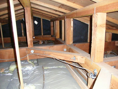 見極めるために小屋裏散歩・・・・・電気配線の碍子に年代を感じる。