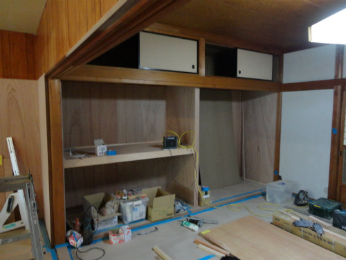 津島市のI様邸古民家再生工事は、先行の工事が着々とすすんでいます。マツミの棟梁の中川さんが、洋間の下地工事をもくもくと行っています。