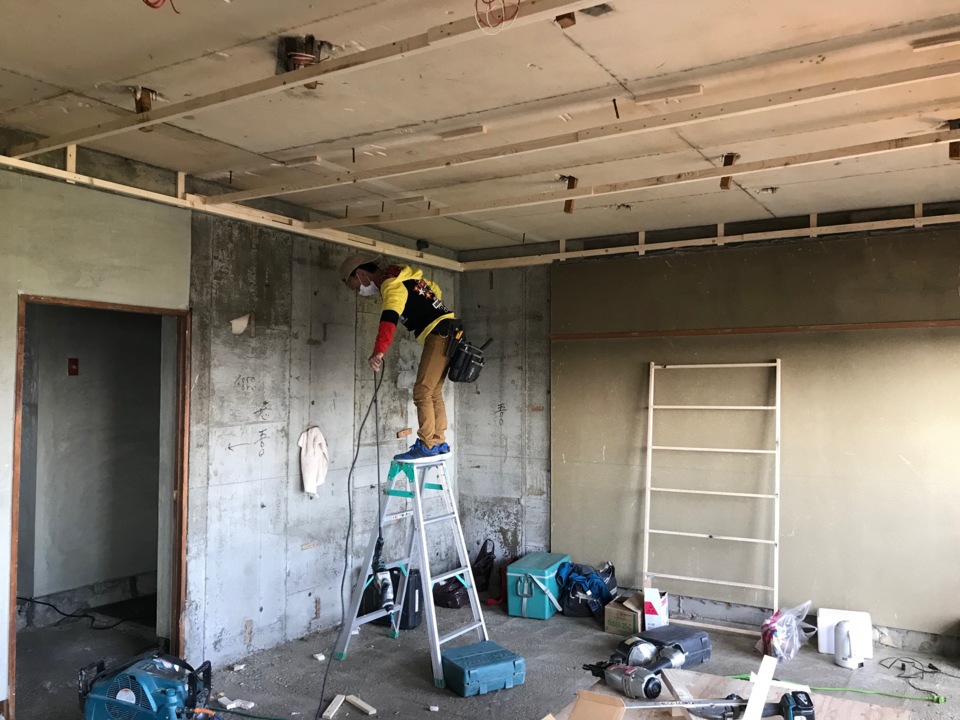 解体作業もひと段落して、下地の検討を行うなかさんです。