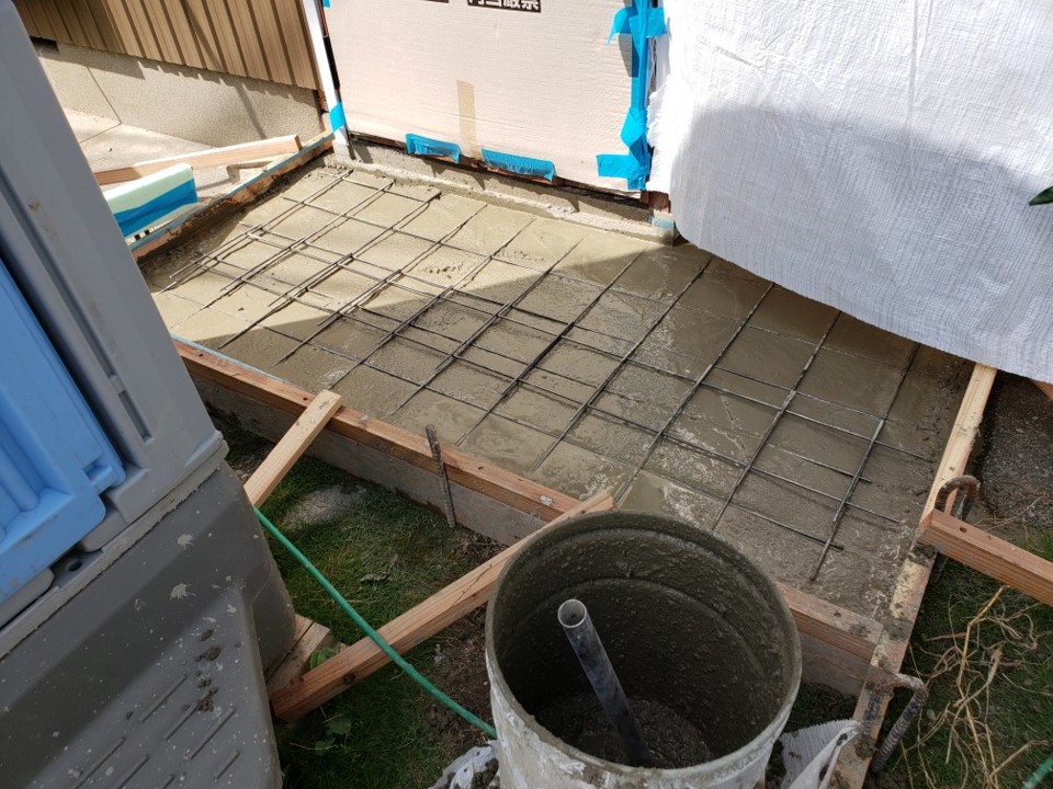 ワイヤーメッシュを入れて玄関ポーチの土間打ちです。