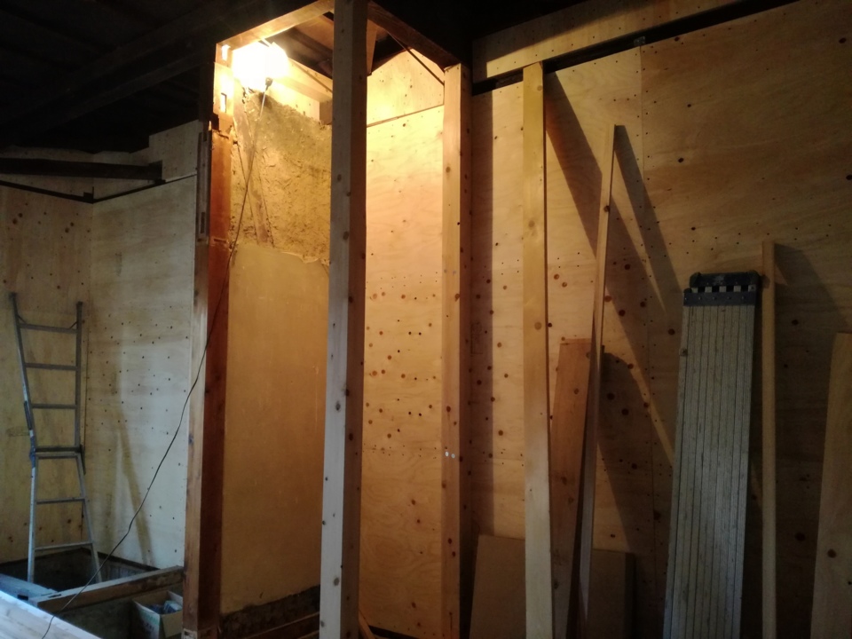 白井です、土壁の埃の中、山ちゃん頑張る。