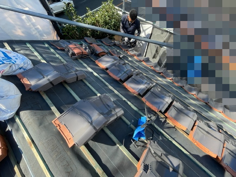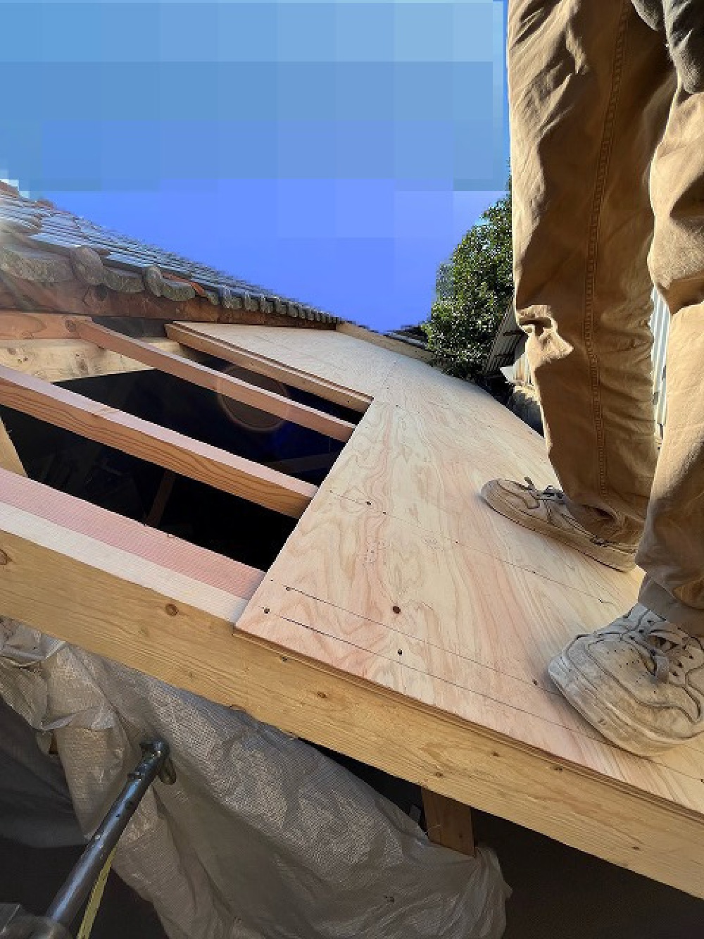 (物置小屋改修工事)透湿シート施工中(寺西)