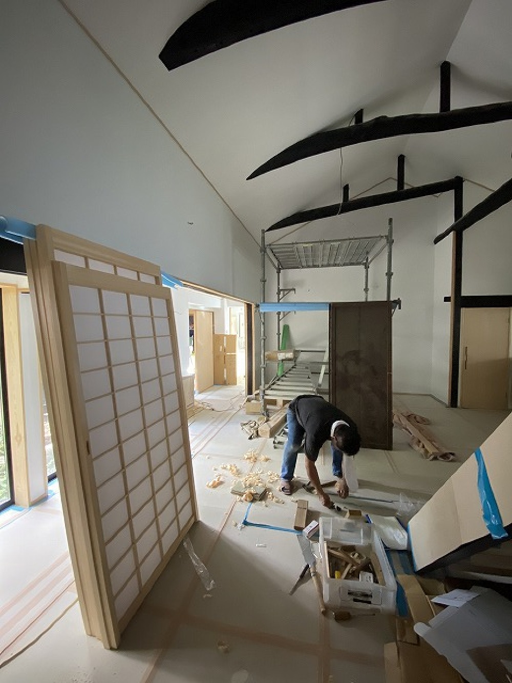 最後の仕上げ 西尾畳さん、きっちり納めてくれました