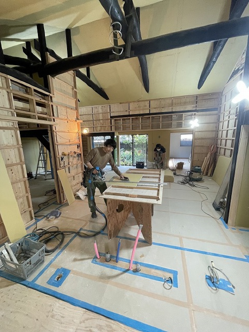 今日からマツミの大工の三浦です。よろしくお願いします。古民家を初めてみて、感動しました やる気が出ました(三浦)