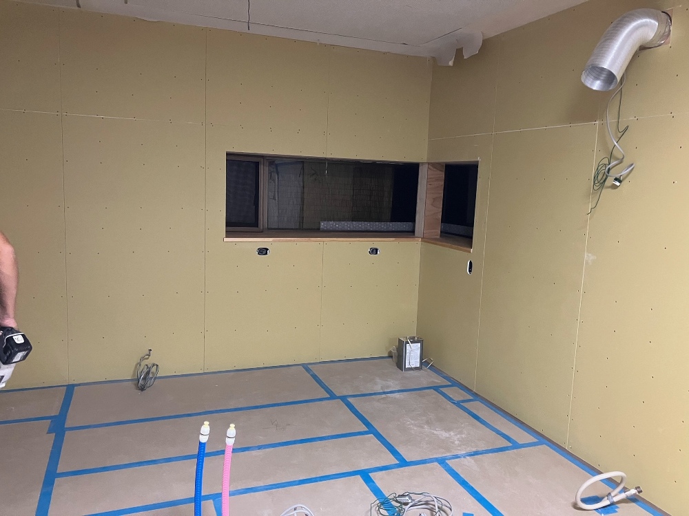 キッチン二日目 順調に進んでいます。 週明けにクロス工事を予定しています(白井)