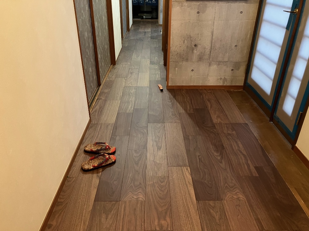 リビングの床を貼り進めています・床暖房なのでこれからの季節が快適に過ごせますね(山本)