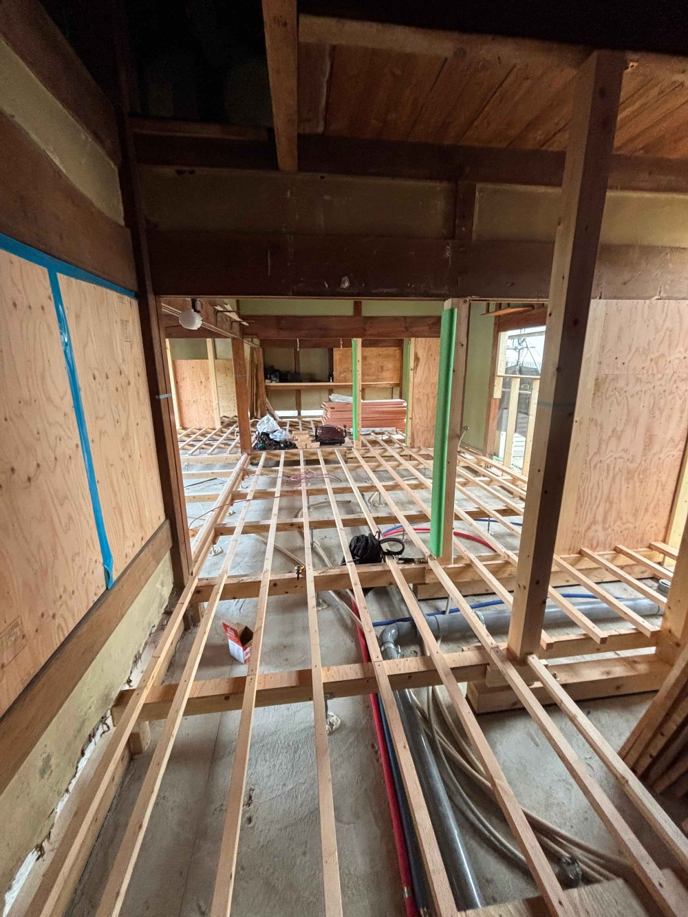 解体が終わり次の工程へ。土台替えの準備をしています(三浦)