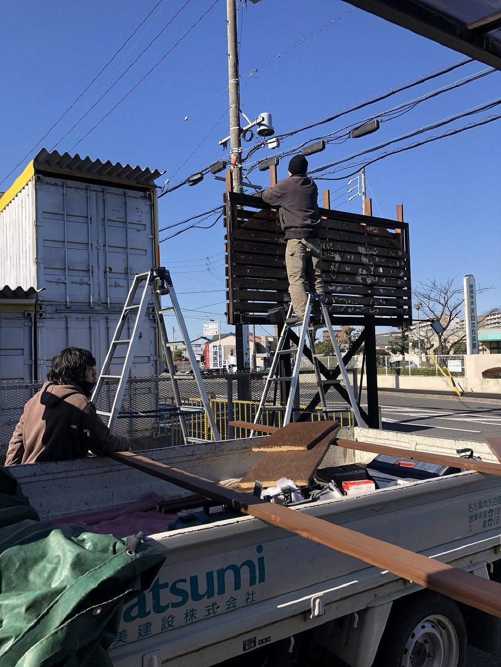 午前中には看板の取付が完了。アプローチ部分の土台替えをしています(寺西)