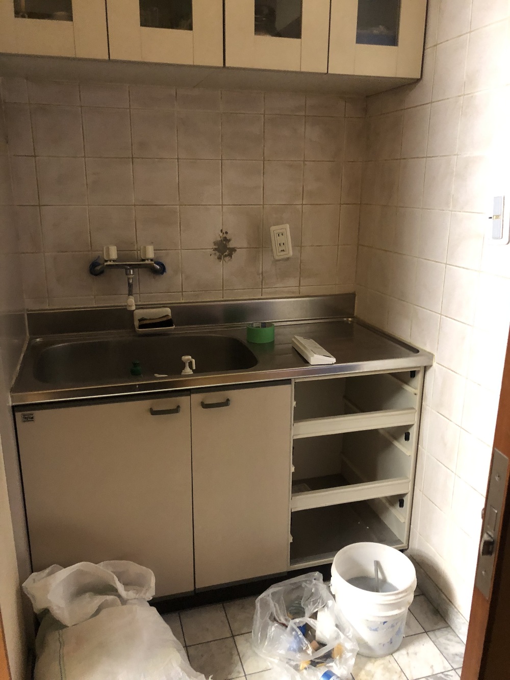 (今回はトイレとイメージを統一したかったのでDIYで塗装しましたが、通常きちんと新しいキッチンに交換させていただきますのでご安心ください)