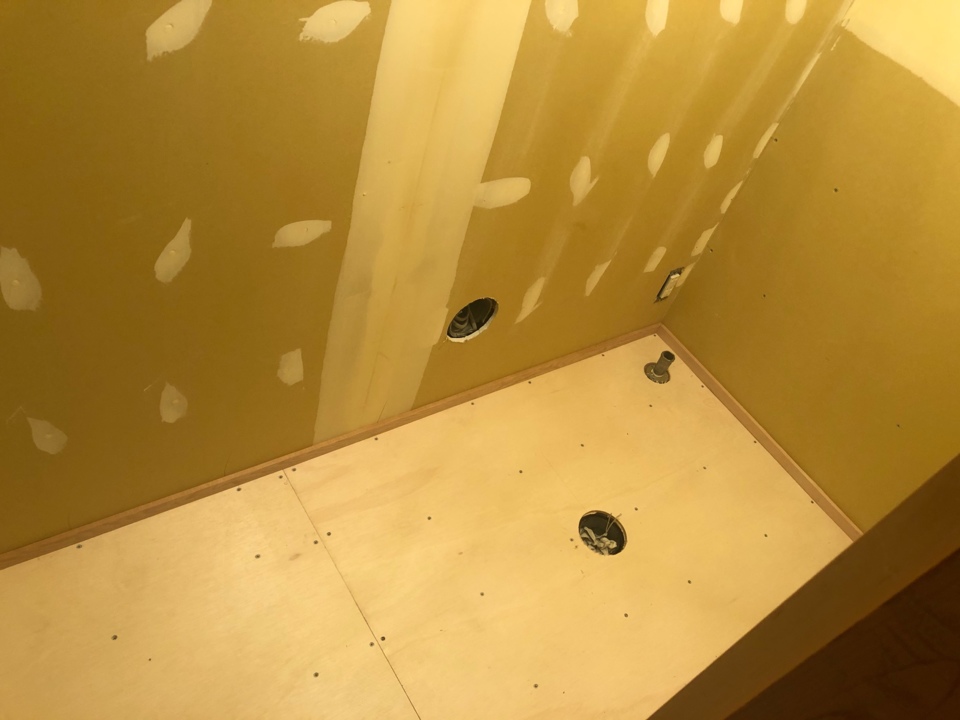 2階トイレの床に合板を貼り足して丈夫にしています(山本)