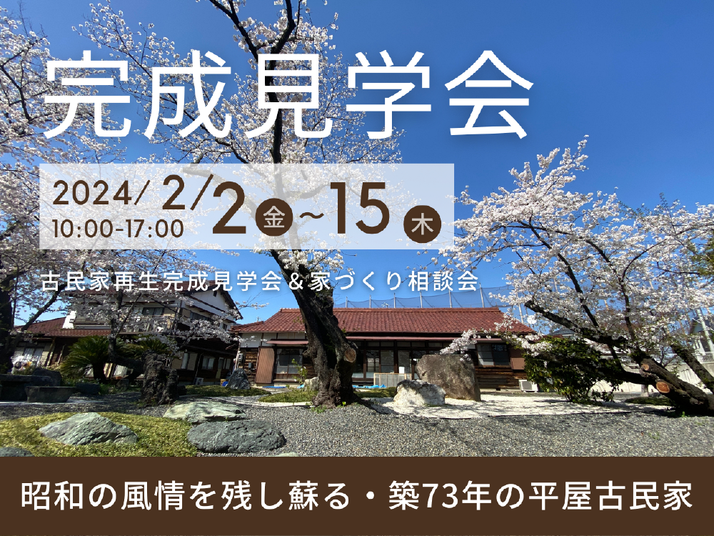 2/2より2/15まで完成見学会&家づくり相談会を開催しています。参加ご予約は0120-144-227まで