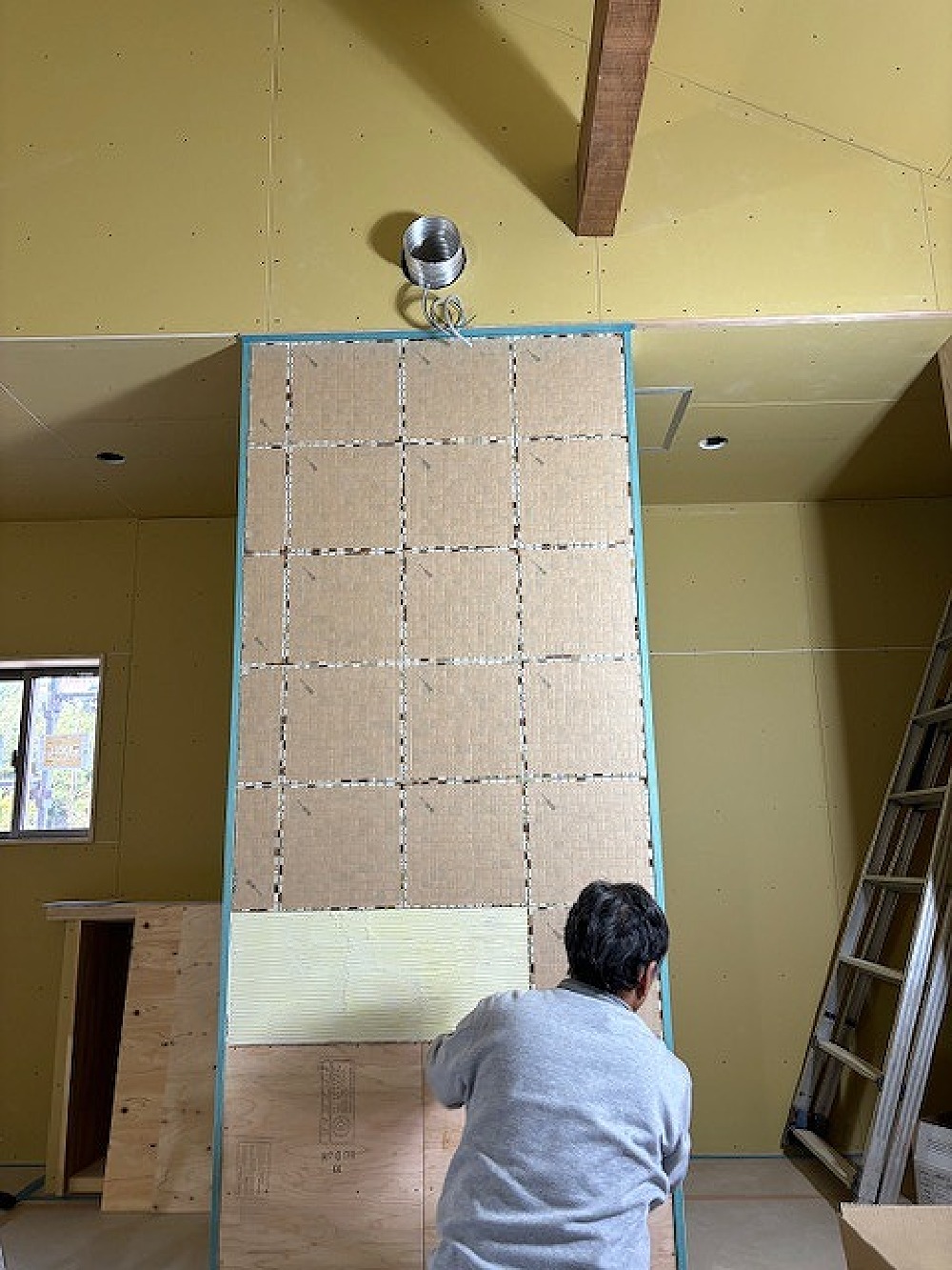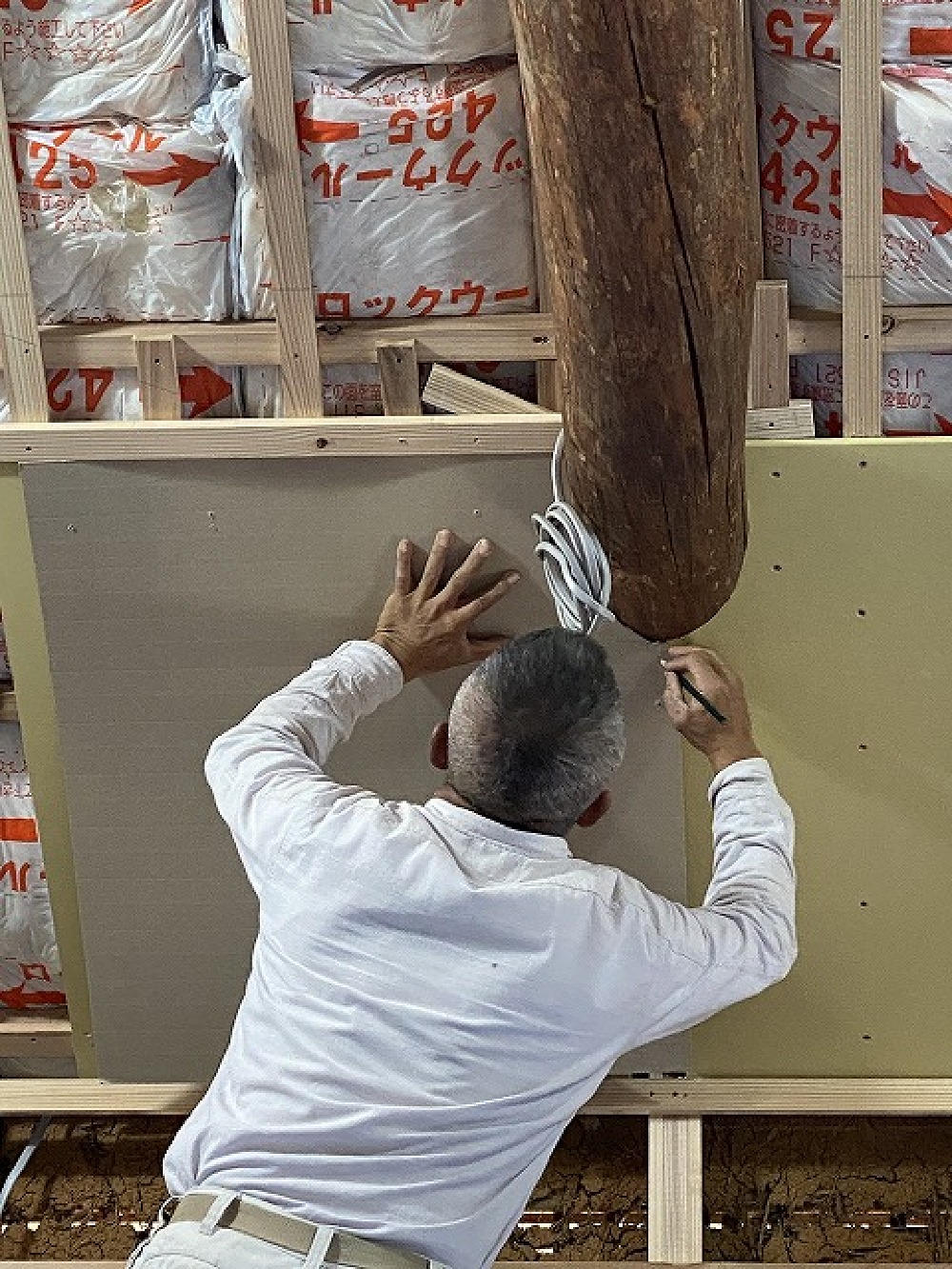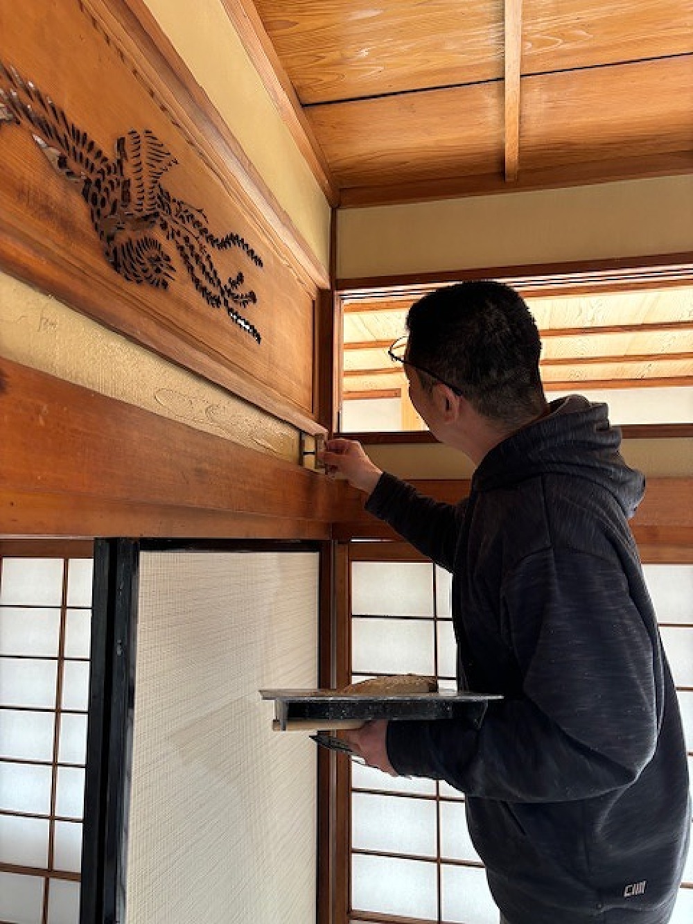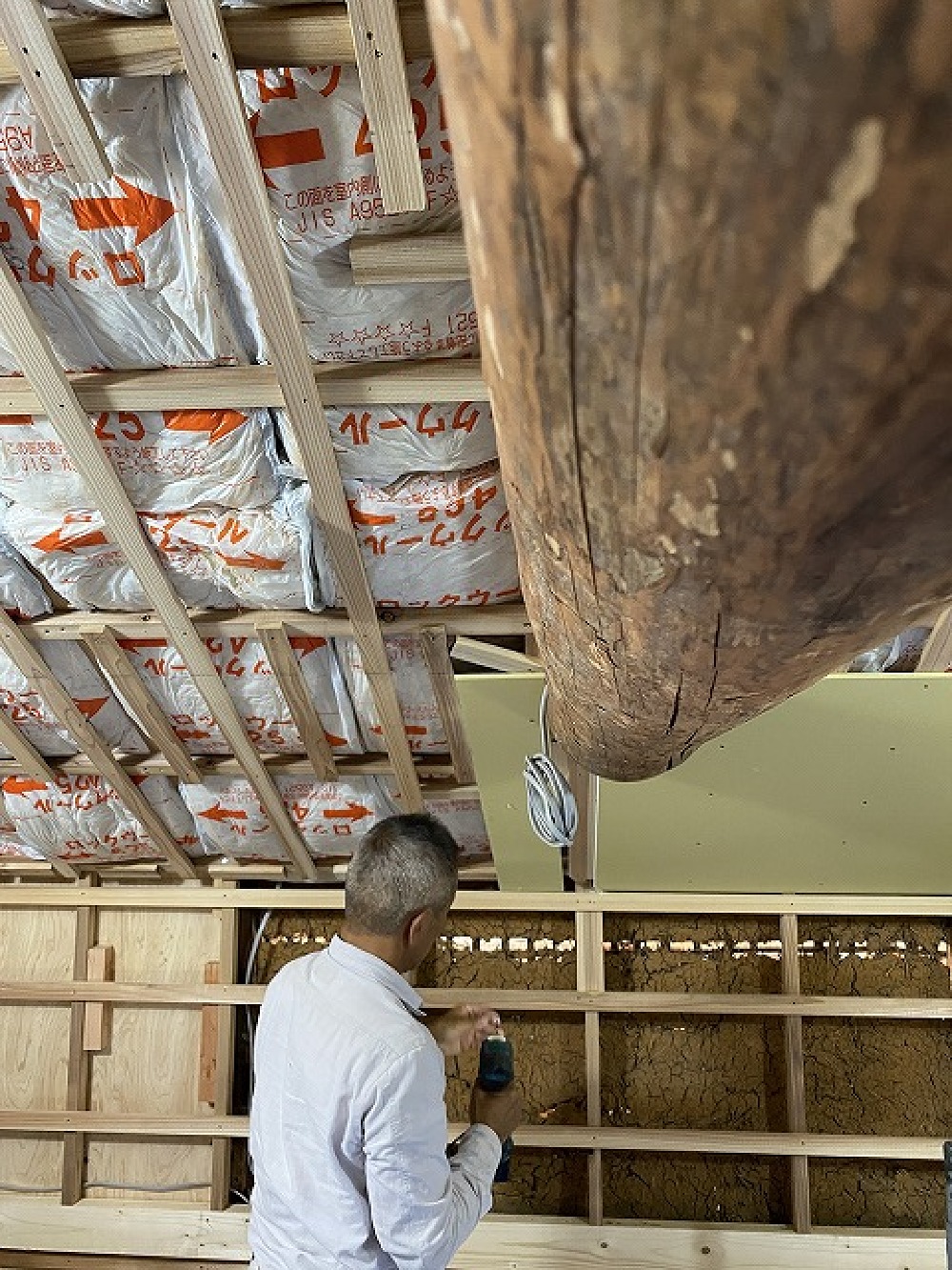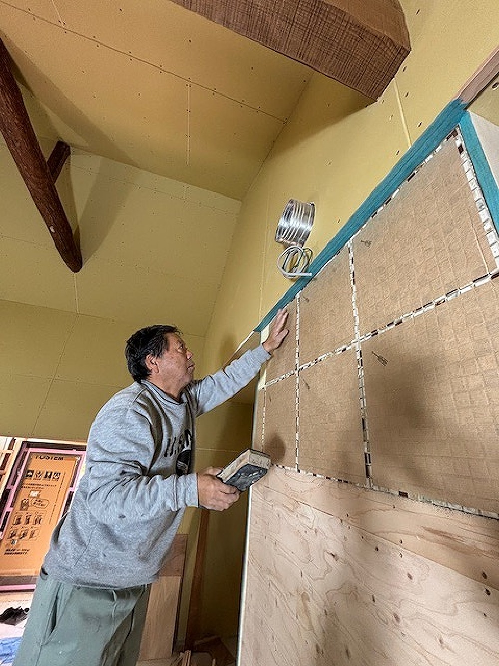 座敷の壁仕上をすすめる間瀬さん。丁寧な仕事です。