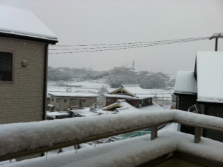 大工の荒木です。日曜日の夕方にはこんなに積もりました。