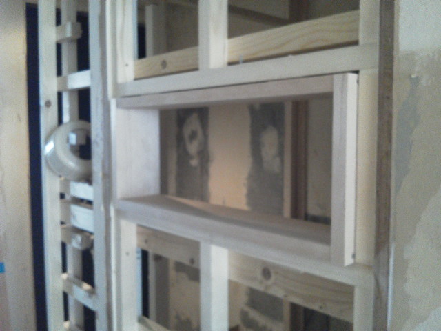 中川です。洗面化粧台の上に取り付ける鏡の枠を作成しました。