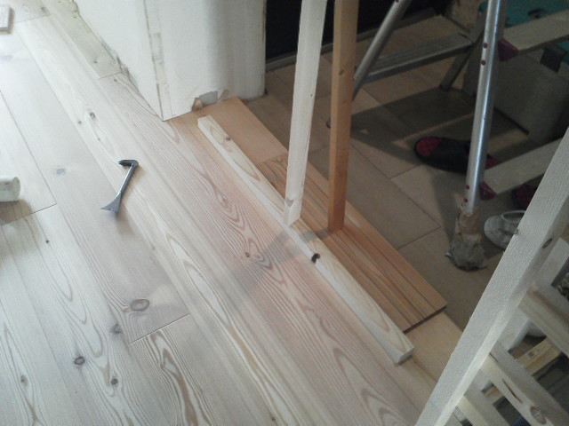 中川です。今日から、カラマツのフローリングを貼りまじめました。