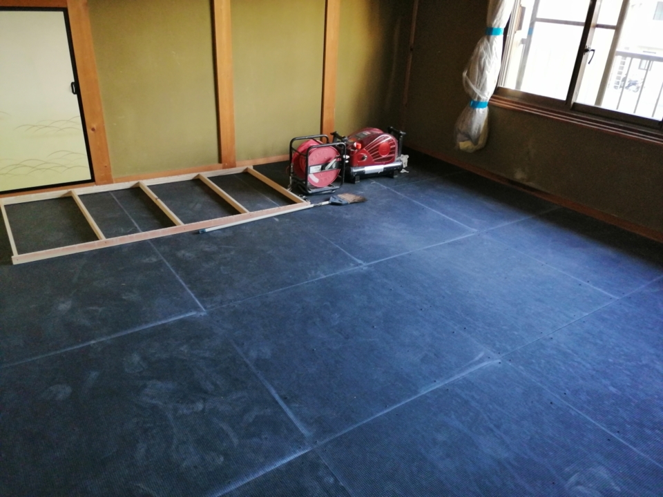 荒木です。床張り終わりました