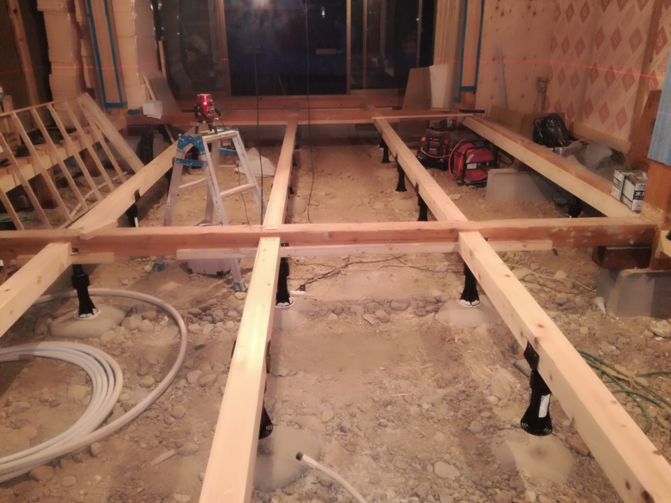 荒木です。大引きを施工しています。