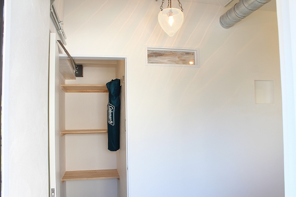 中川です。納戸の中に飾り窓の枠を取り付け中です。