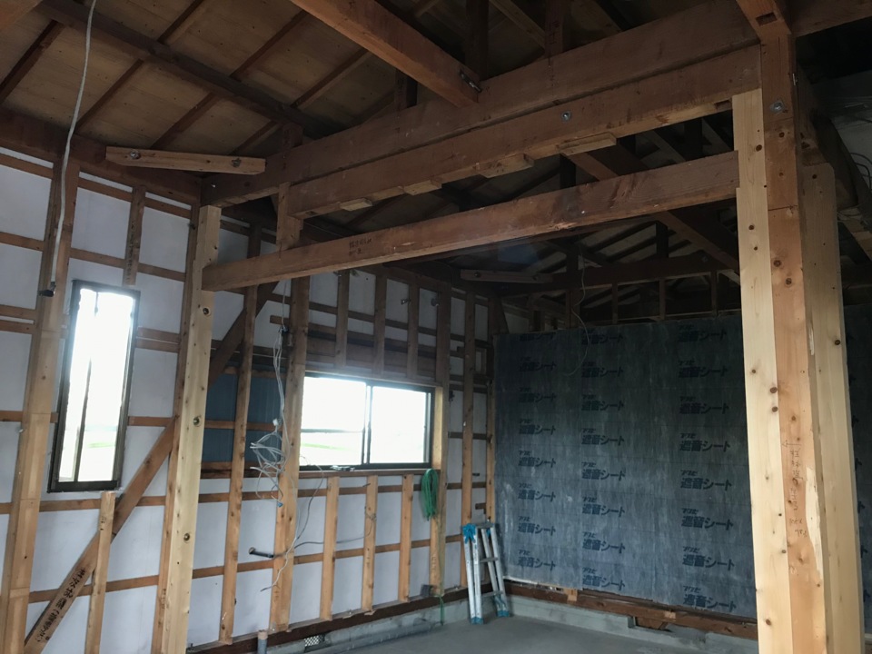 山本です。ひたすら解体を進めています。小屋組みが露わになってきました