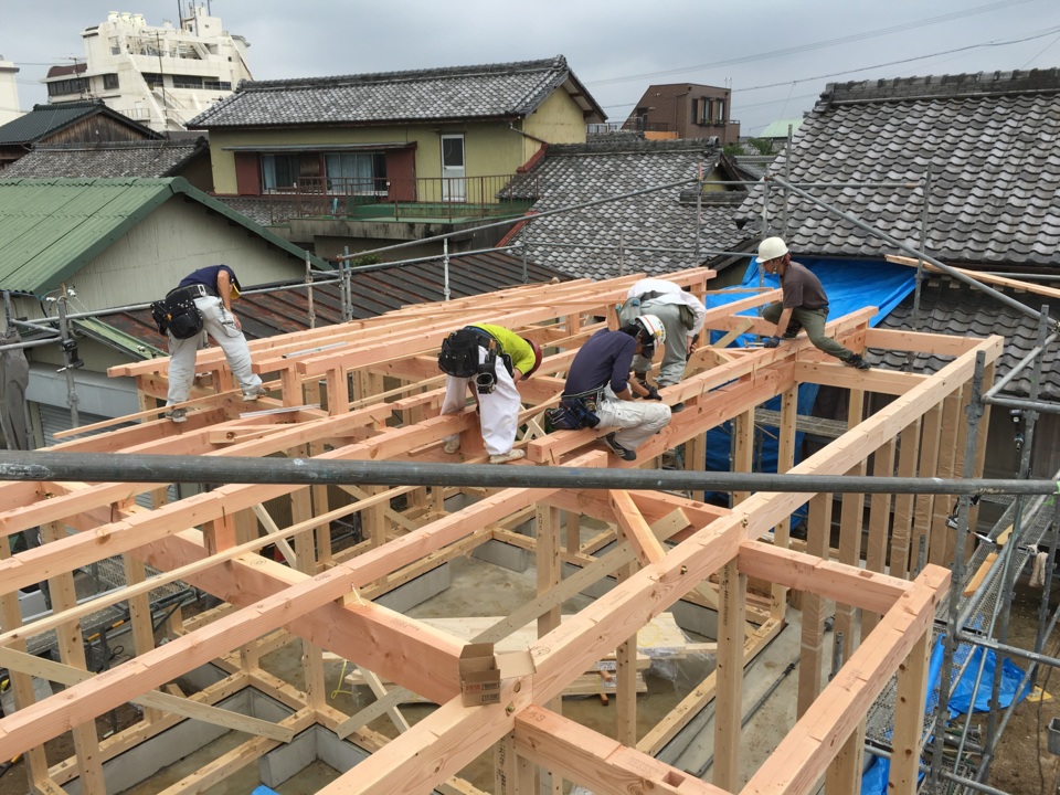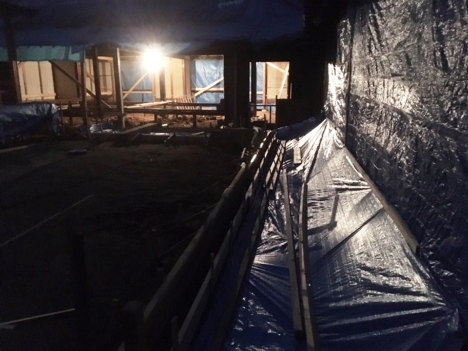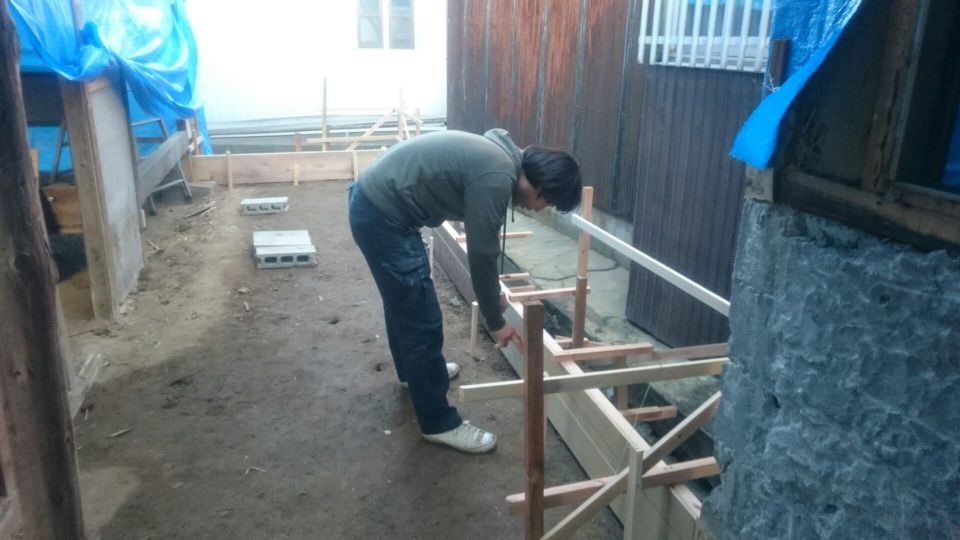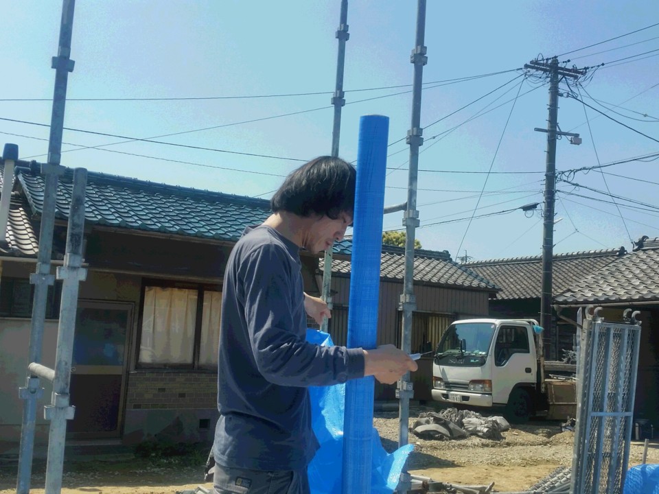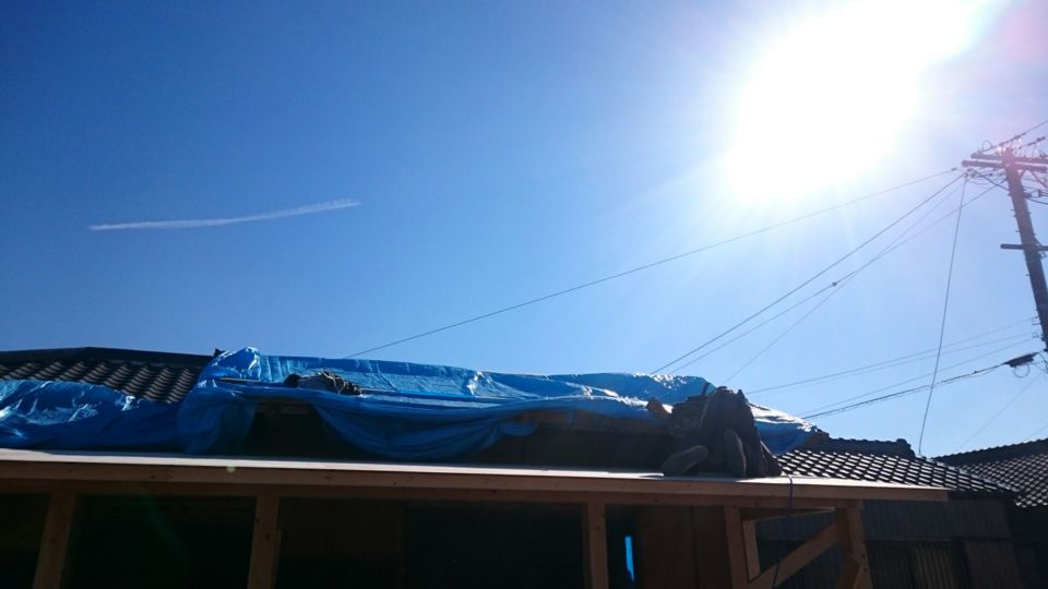 仮寸法を出し終わり、雨仕舞いをする寺やん!