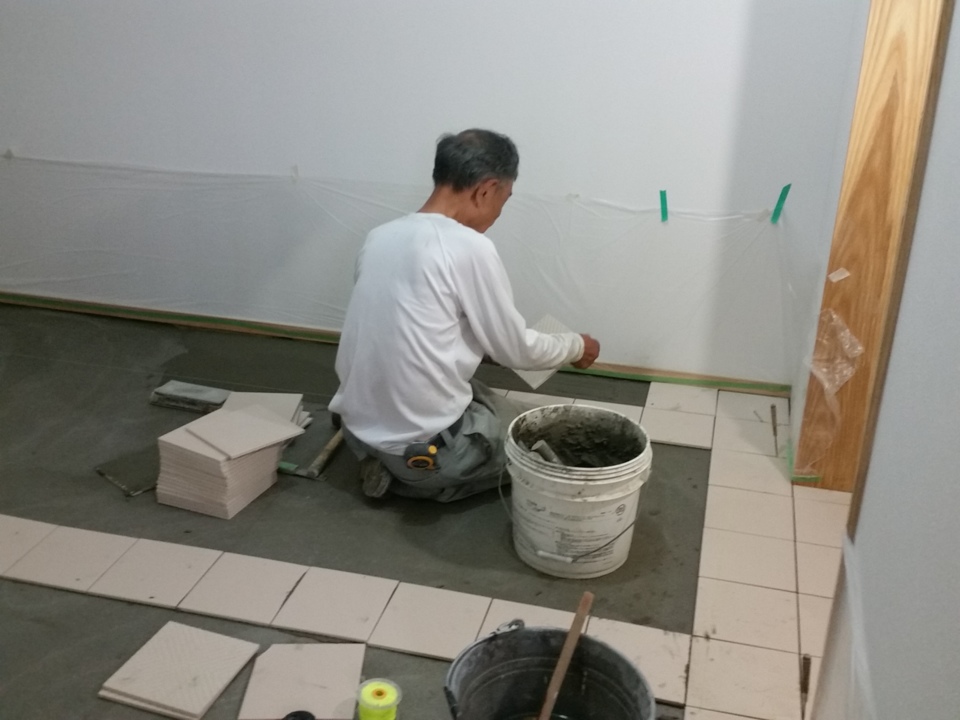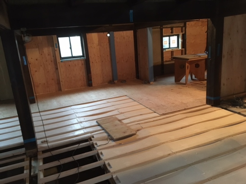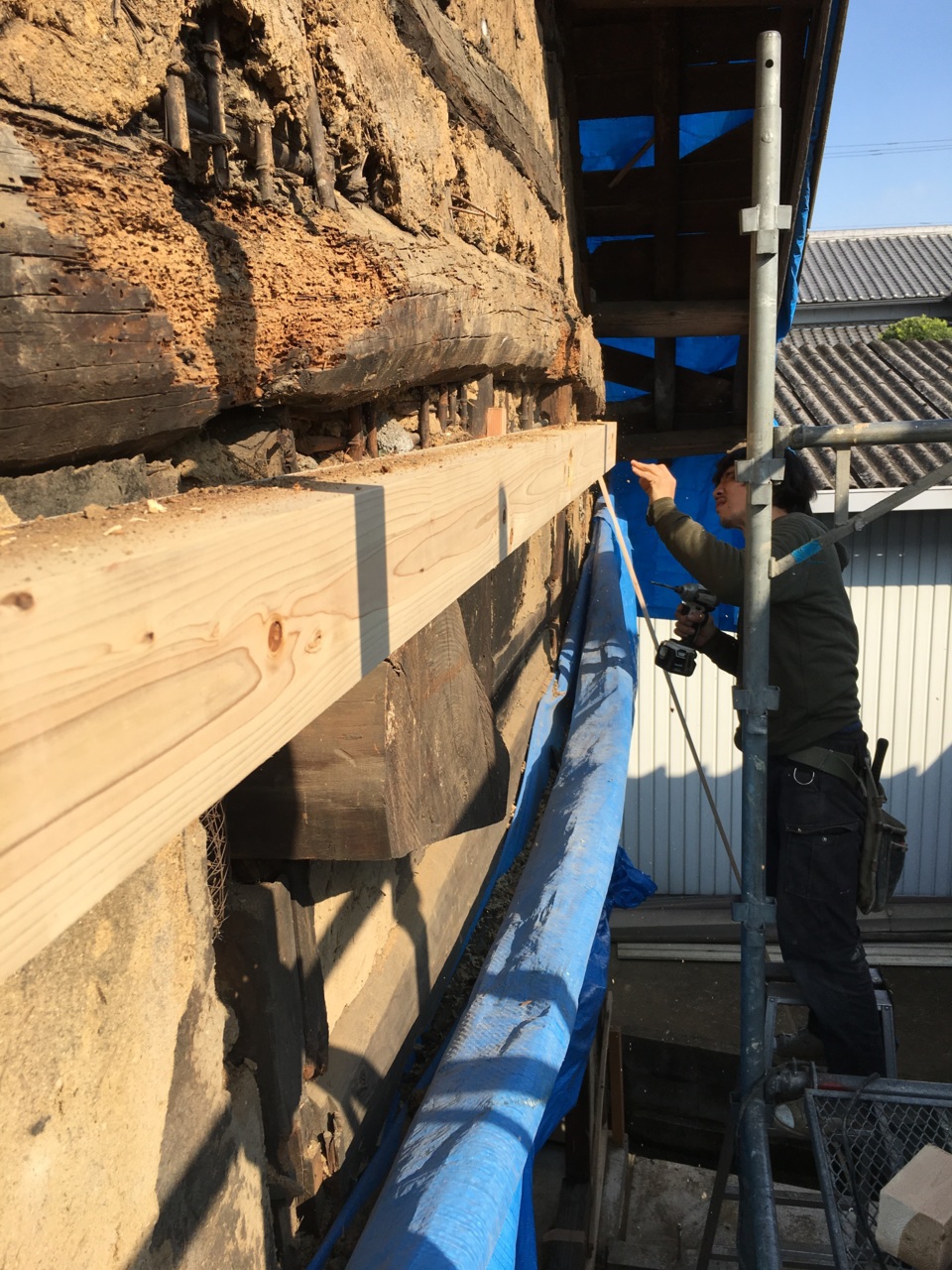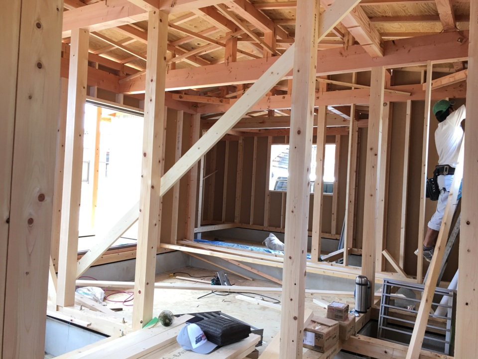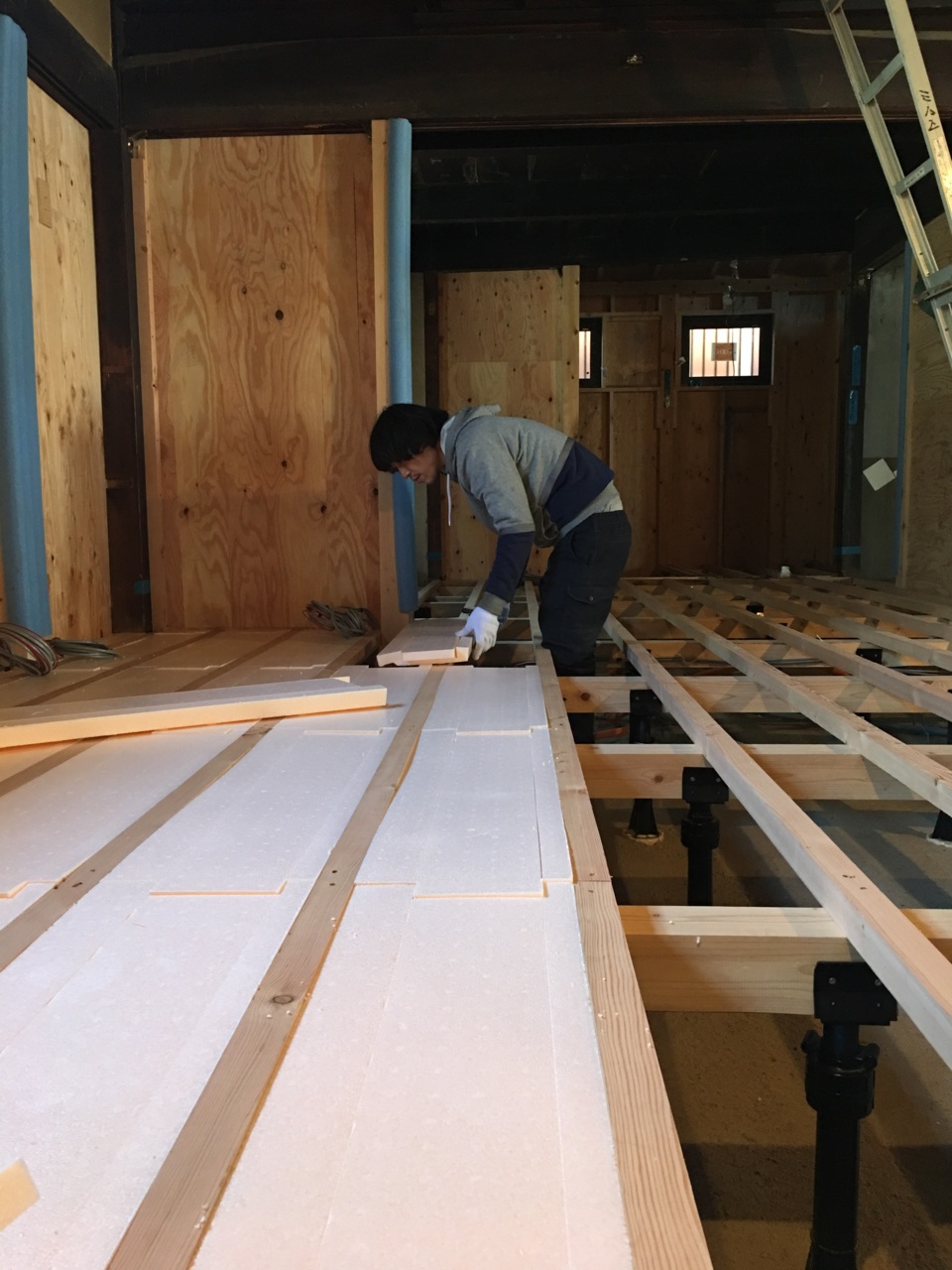 中川です、土台敷きにきました。まずは朝から水掻きです!