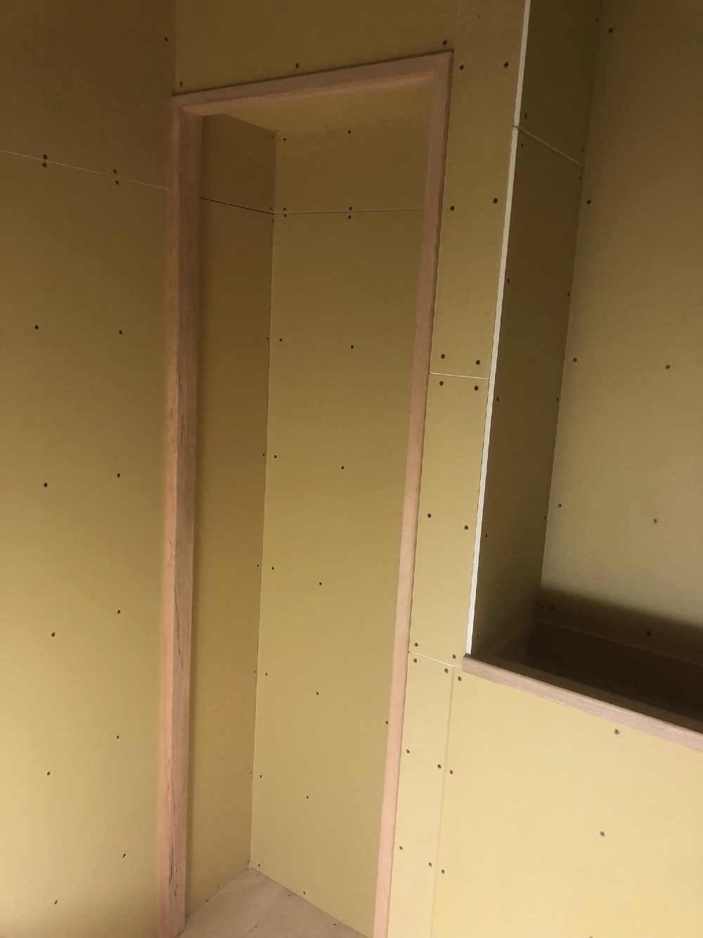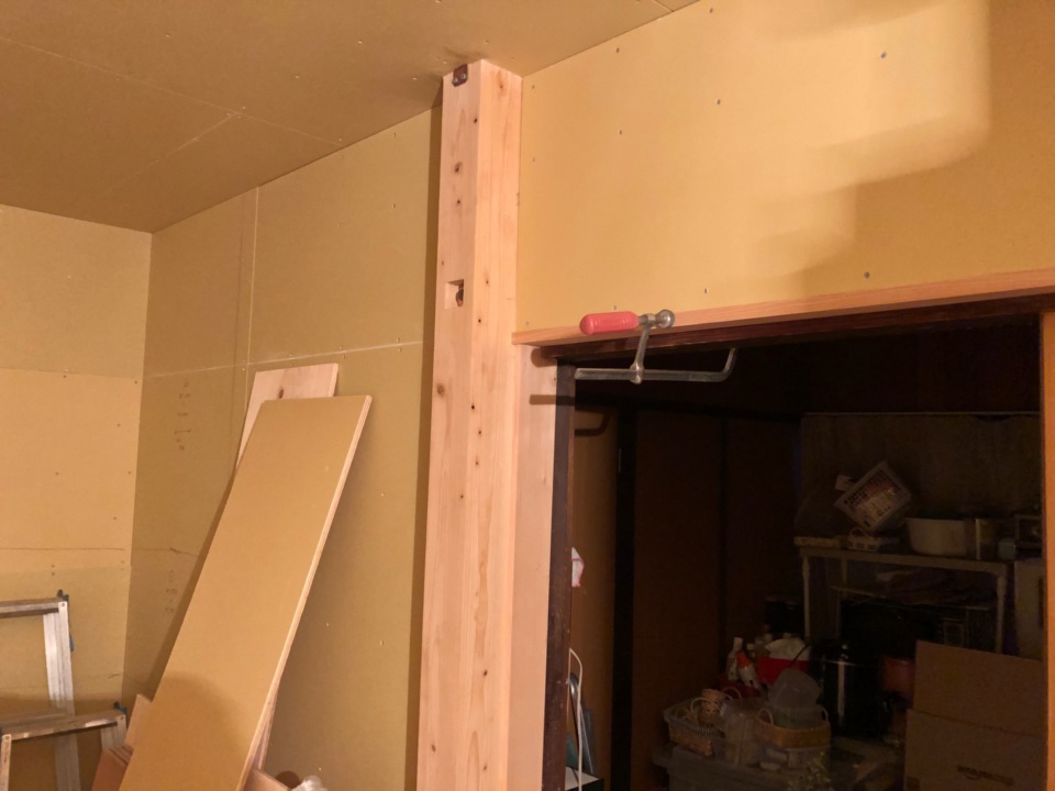 収納の入り口枠、化粧の合板を施工しました(山本)