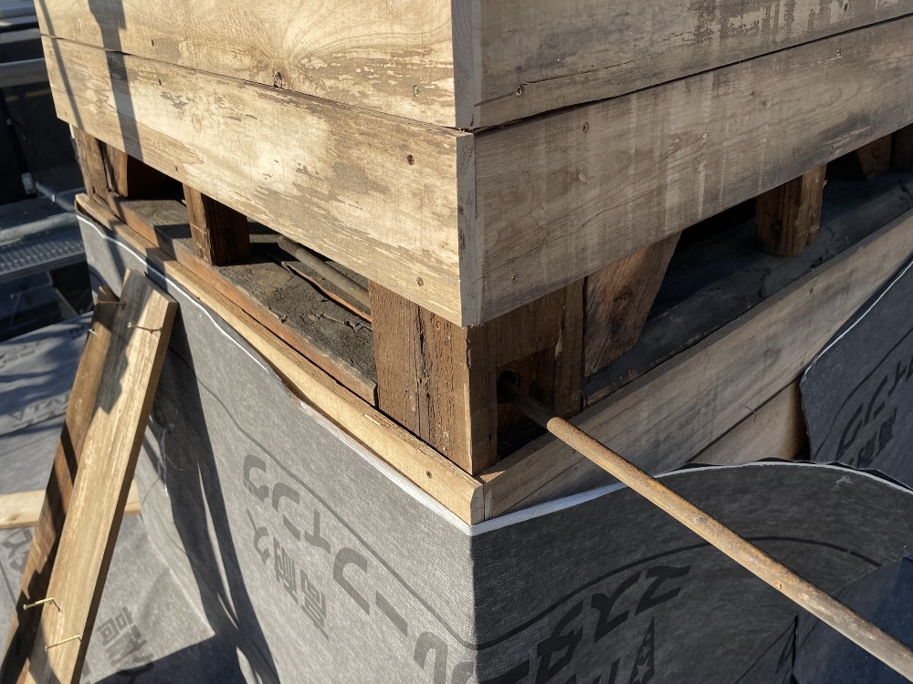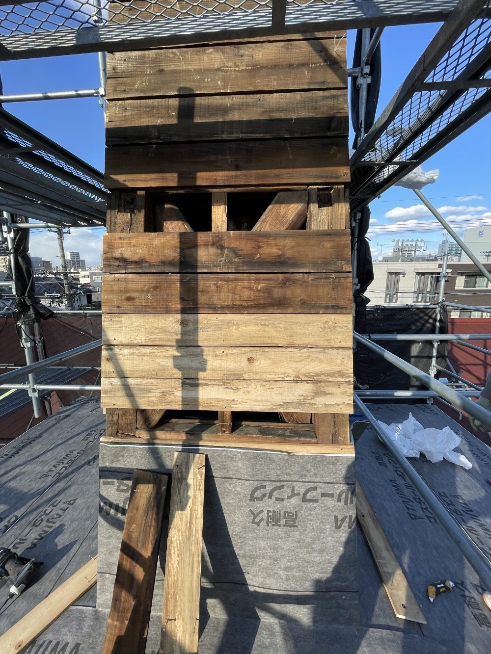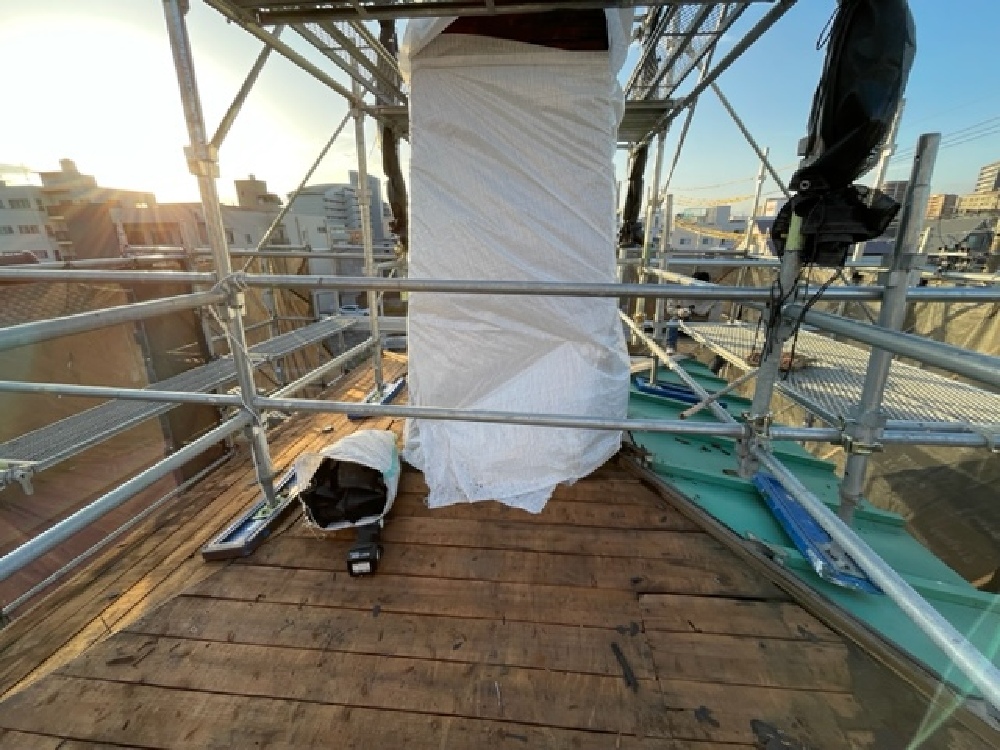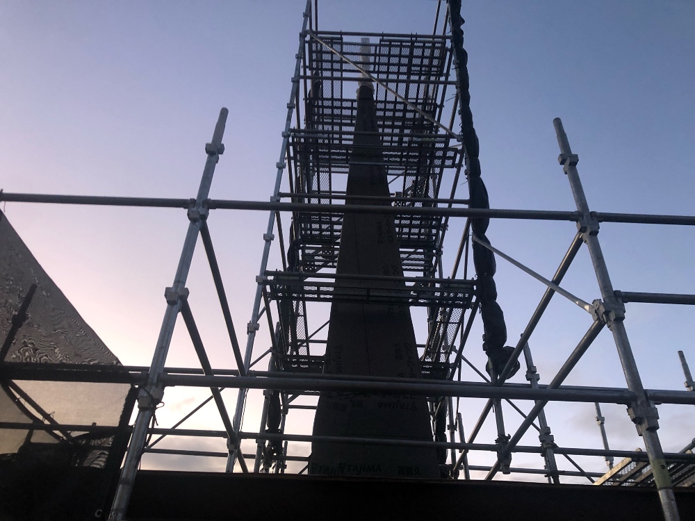 板金屋さんが塔屋周りの残工事施工中です(山本)