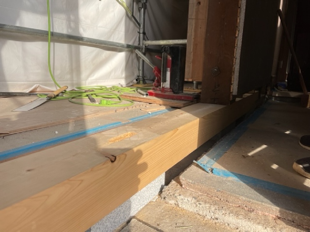 白井です。教会の床下です。白蟻被害を受けた大引を補強しました。床がぶかぶかしている。などのご相談お受けします。