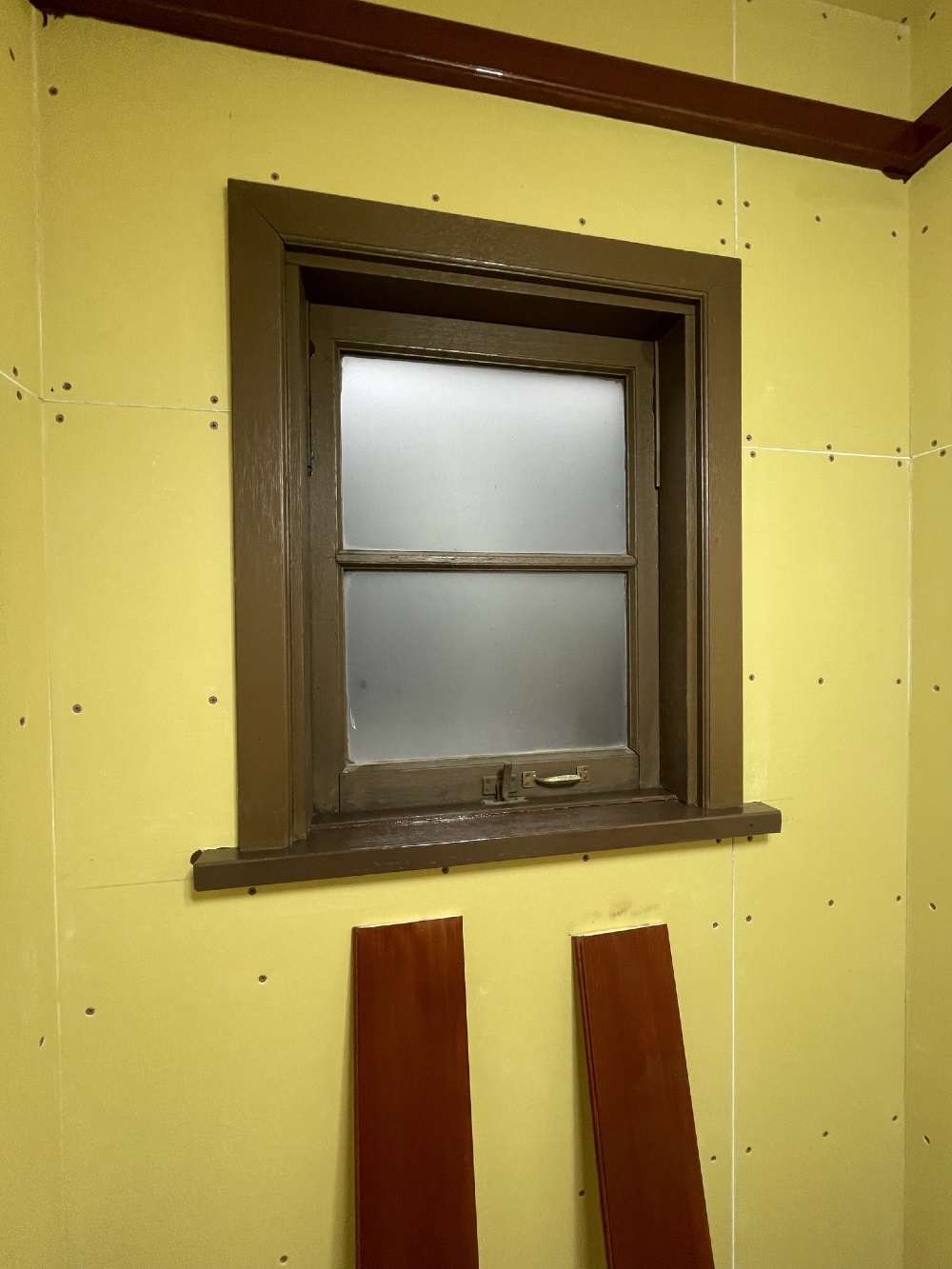 枠、建具の塗装工事も完了。 週末からクロス工事開始予定です(白井)