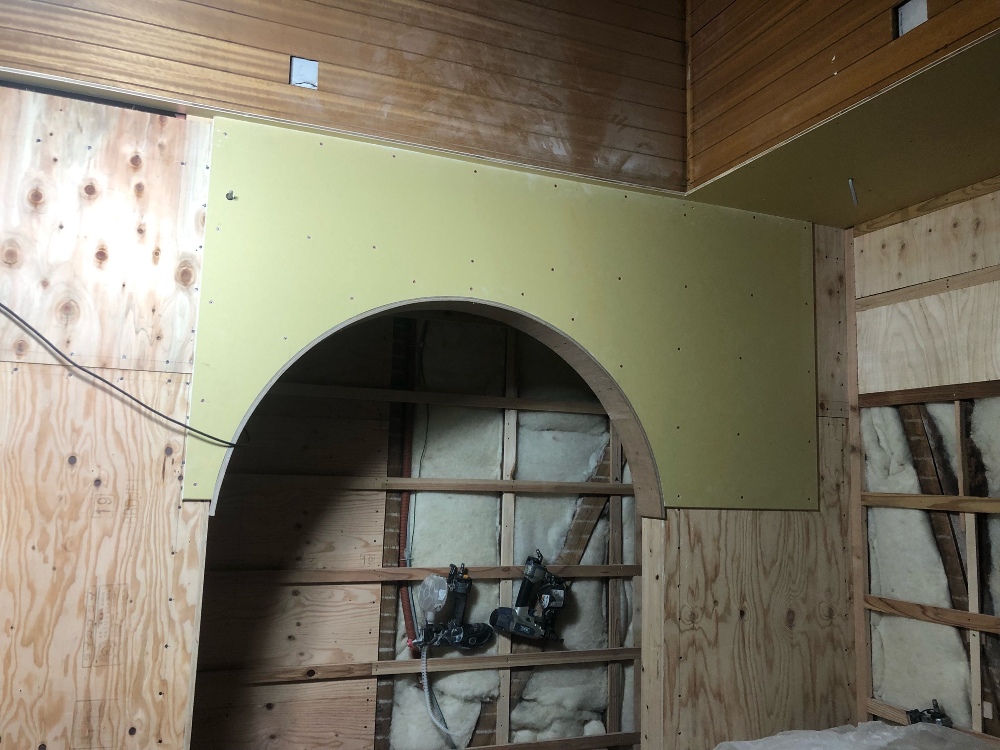 下地に断熱材を入れたのでボードを貼っていきます(三浦)