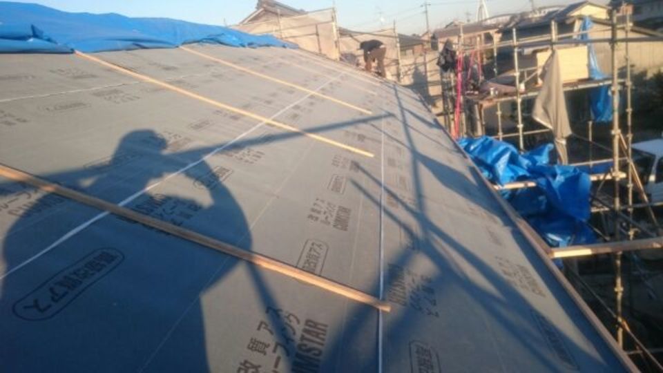 大工の白井です。防湿シートの敷き込みも完了し、準備万端です。