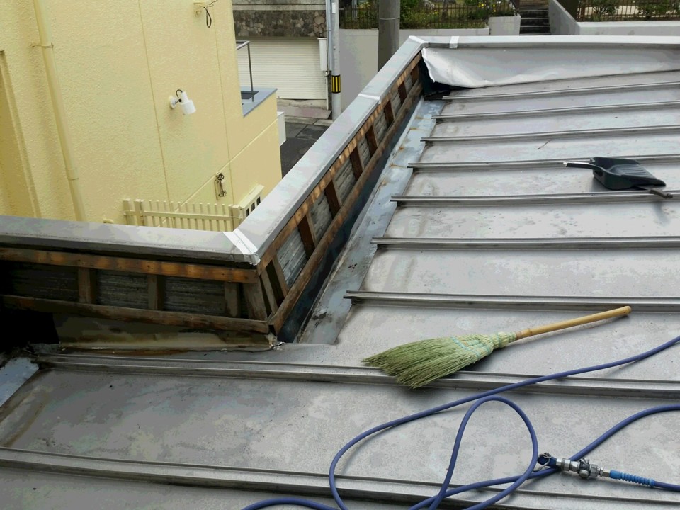 板東板金さんが、トタンの張り替えを完了しました。ガルバリウム鋼板なので、耐久性が高まりました。