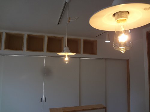 アンティークなペンダント照明がナチュラルな家にマッチしています。