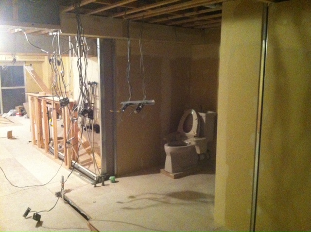 大工の荒木です。解体搬出時に汚した廊下を清掃しています。